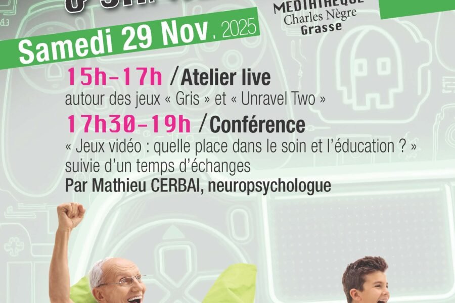 ActualitéévénementsHandicap JEUX VIDÉO & SANTÉ MENTALE 𝗦𝗮𝗺𝗲𝗱𝗶 𝟮𝟵 𝗻𝗼𝘃𝗲𝗺𝗯𝗿𝗲, le CLSM de Grasse et la médiathèque organisent un après-midi d'information et…veroniquepechenet27 novembre 2025
